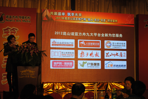 19:10~19:15,主持人串词,介绍诺亚方舟成立11周年以及昆山地产网更名为“昆山诺亚地产网”